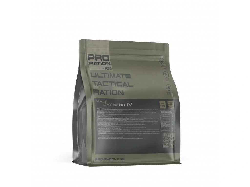 Ultimate Tactical Ration FULL DAY MENU V- obsahuje: Hlavní jídla: Rýžový nákyp se švestkama 400g Švédské masové kuličky s krémovou omáčkou a bramborovou kaší 400 g Kuřecí po zahradnicku s fazolemi 400 g Svačiny: Konopná energetická tyčinka Čokoládová energetická tyčinka Vanilková regenerační tyčinka Slané sušenky Sladké sušenky Masová tyčinka Arašídové máslo Doplňky: Multivitamínový komplex Vlhčené ubrousky 2ks Kafe 2ks Antibakteriální ubrousky 2ks Čaj 2ks Samoohřevná kapsle 3ks Cukr 3ks Žvýkačky 4ks Sůl a pepř 2ks Papírové kapesníčky Lžíce 3ks Složení: Rýžový nákyp se švestkama: mléko, švestky kompotované (24 %) (švestky, voda, cukr), rýže (15 %), cukr, vejce, máslo, sůl, skořice. Švédské masové kuličky s krémovou omáčkou a bramborovou kaší: Bramborová kaše (38 %) (brambory, mléko), krémová omáčka (34 %) (smetana, hovězí vývar, zeleninový vývar (voda, mrkev, petržel, pastiňák, celer), máslo, mouka kukuřičná, mouka rýžová, dijonská hořčice (voda, hořčičné semeno, lihový ocet, sůl), sojová omáčka (pitná voda, sojové boby (24 %) (sója, cukr, sůl, pšeničná mouka), masové kuličky (24 %) (hovězí maso mleté, vepřové maso mleté, cibule, vejce, petrželová nať, kopr, pažitka, libeček, sůl, nové koření, pepř, kardamom), brusinky (4 %). Kuřecí po zahradnicku s fazolemi: kuřecí stehenní maso (30 %), zelenina (kukuřice, hrášek, mrkev), fazole (20 %), cibule, mouka rýžová, mouka kukuřičná, řepkový olej, sůl, paprika, pepř, chilli. Konopná energetická tyčinka: směs ořechů 40 % (arašídy, mandle, pistácie), konopná semínka 26 %, třtinový cukr, glukózový sirup, dextróza, kokosový tuk, řepkový olej, dýňová semínka, sušené odstředěné mléko, emulgátor: sójový lecitin. Čokoládová energetická tyčinka: směs ořechů 41 % (arašídy, lískové ořechy, mandle), třtinový cukr, glukózový sirup, dextróza, kokosový tuk, řepkový olej, slunečnicová semena, čokoláda 8 % (kakaová hmota, kakaové máslo, vanilkové aroma), kakao, sušené odstředěné mléko, emulgátor: sójový lecitin. Může obsahovat stopy seznamu, sóji a lepku. Vanilková regenerační tyčinka: směs ořechů 71 % (arašídy, mandle), syrovátkový proteinový izolát, třtinový cukr, glukózový sirup, dextróza, kokosový tuk, řepkový olej, sušené odstředěné mléko, vanilkové aroma, mletá vanilka 1 %, emulgátor: sójový lecitin. Může obsahovat stopy seznamu, sóji a lepku. Slané sušenky: pšeničná mouka, palmový tuk, glukózový a fruktózový sirup, cukr, sůl, kypřící látky (hydrogenuhličitan sodný a amonný), emulgátor: slunečnicový lecitin, antioxidanty (metabisulfit sodný a kyselina askorbová) a aroma. Může obsahovat stopy vajec, mléka, sezamu a sóji. Sladké sušenky: pšeničná mouka, cukr, palmový tuk, glukózový a fruktózový sirup, kypřící látky (hydrogenuhličitan sodný a amonný), sůl, antioxidanty (metabisulfit sodný a kyselina askorbová) a vanilkové aroma. Může obsahovat stopy vajec, mléka, hořčice, sezamu a sóji. Masová tyčinka: hovězí maso, mořská sůl, cibule, zvlhčující látka: glycerol, směs koření, přírodní aroma. Arašídové máslo: pražené arašídy (100 %). Může obsahovat stopy skořápkářových plodů a sezamu. Trvanlivost: Produkty Adventure Menu (hlavní jídla) 15 let Produkty THIS-1 (energetické a regenerační tyčinky) 15 let Ostatní produkty 42 měsíců Multivitamínový komplex 24 měsíců Váha: 1. 743g Obrázek je pouze ilustrativní.Doplňkové parametry