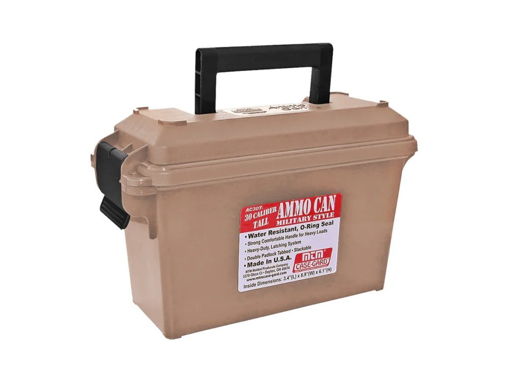Rodina schránek na střelivo MTM Case-Gard se rozrostla o druhou možnost výběru v ráži 30. Jedná se o AC30T, plechovku ráže 30, která má kopírovat tvar skutečné přebytečné armádní muniční plechovky ráže 30. Obě, jak původní krátká plechovka MTM ráže 30, tak tento nový vysoký design, nabízejí stejnou kapacitu jako tradiční vojenská plechovka na munici ráže 30. Plechovky na munici MTM jsou skvělým způsobem skladování volně ložené nebo krabicové munice. Tyto plechovky na munici s pohodlnou rukojetí jsou vylisovány z odolného polypropylenového plastu a vydrží roky služby. Jsou vynikající volbou pro skladování ve sklepích, garážích a kůlnách. Voděodolné těsnění s O-kroužkem Záložka s dvojitým visacím zámkem Vlisované stohovací hřebeny Odolné, uzavírací systémy Vnitřní rozměry: 3,4„ (délka) x 8,9“ (šířka) x 6,1“ (výška) Vnější strana: 5„(D) x 11,3“(Š) x 7,2"(V) Navrženo tak, aby pojmulo až 15 kg munice nebo vybavení.Doplňkové parametry