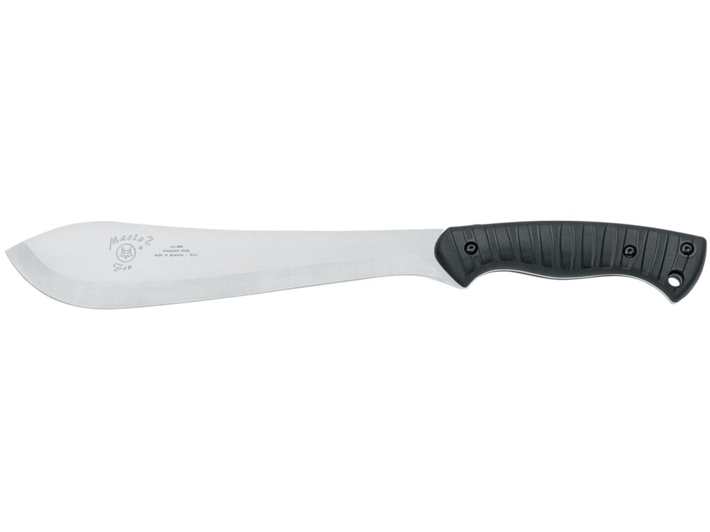 Čepel z nerezové oceli W 1.4116 s tvrdostí HRC 56–58 nabízí vysokou odolnost proti korozi a dlouhou životnost ostří. Povrchová úprava Satinato dodává čepeli elegantní vzhled a snižuje tření při řezu. Tvar čepele je navržen pro efektivní sekání i přesné řezy, což z této mačety dělá univerzální pracovní nástroj do terénu.