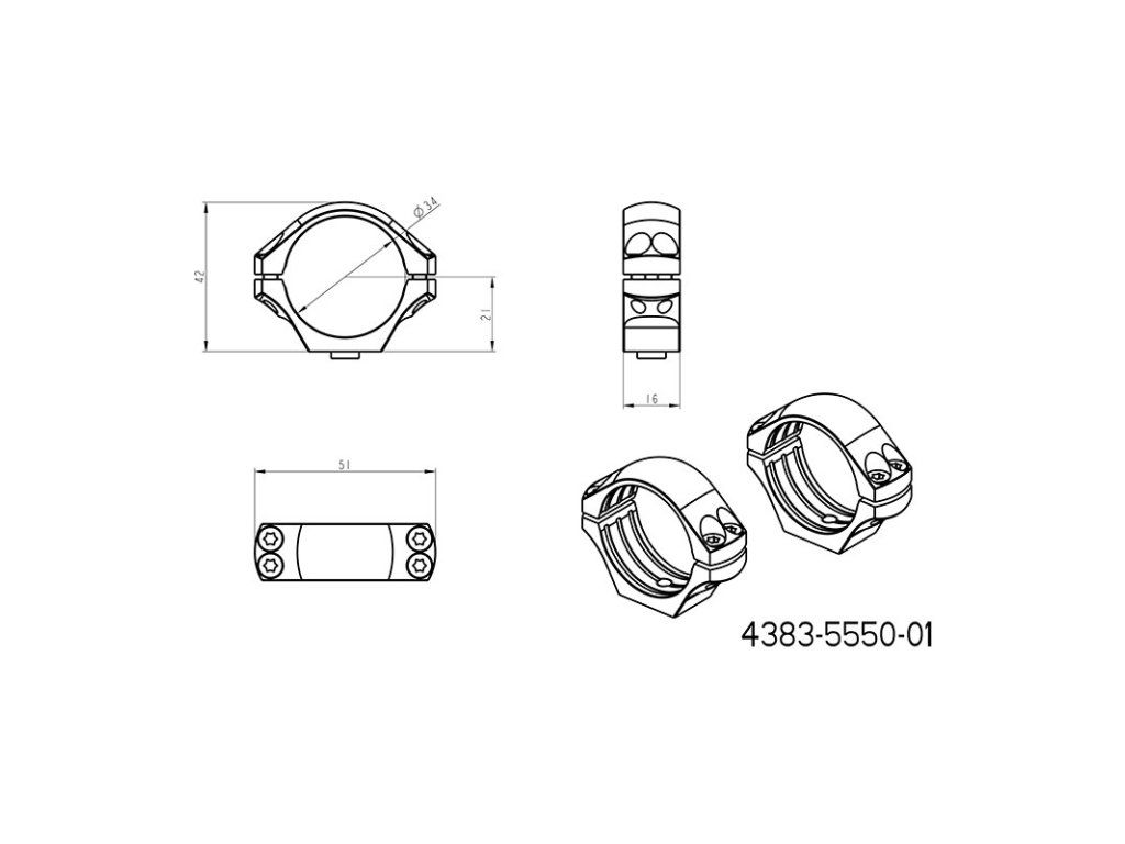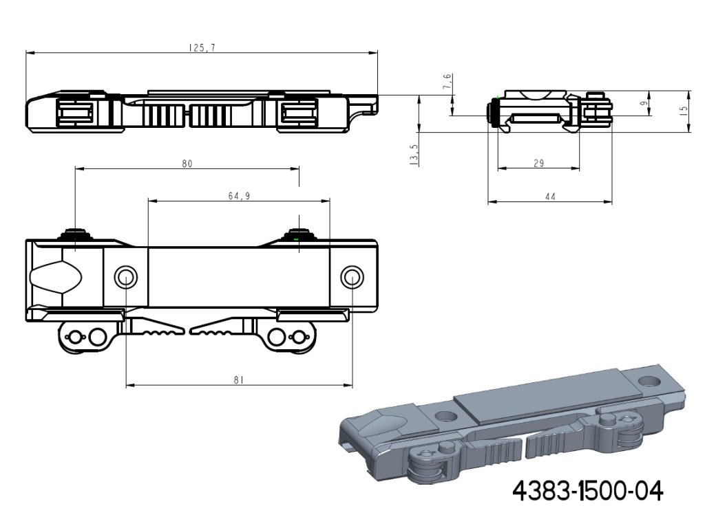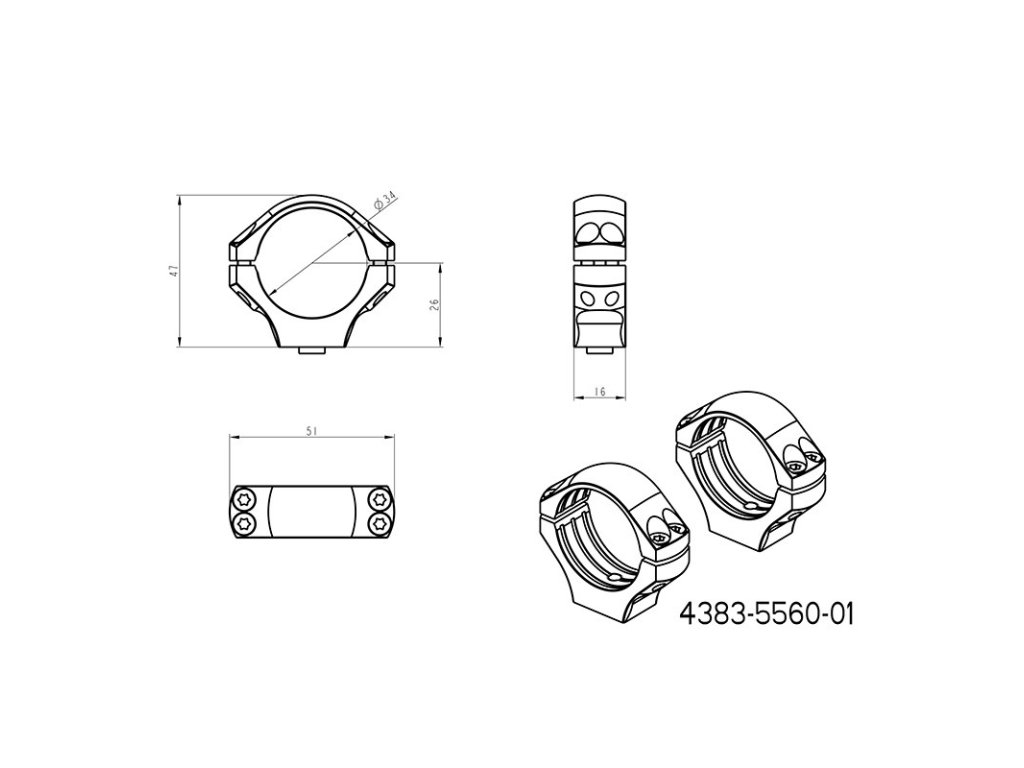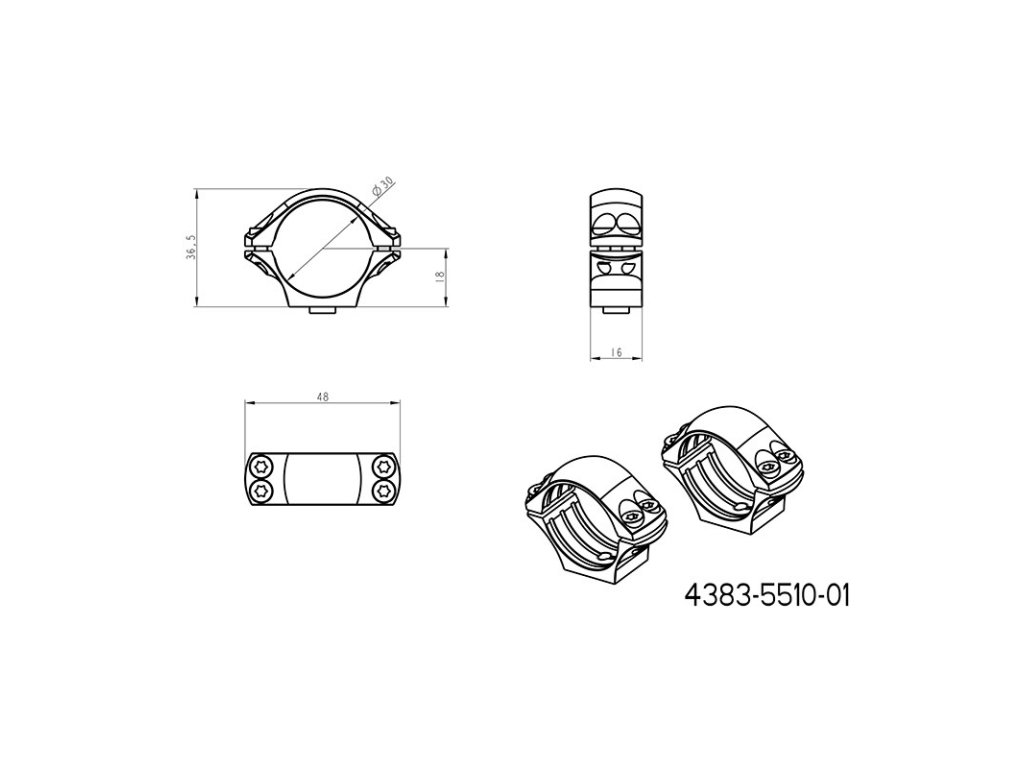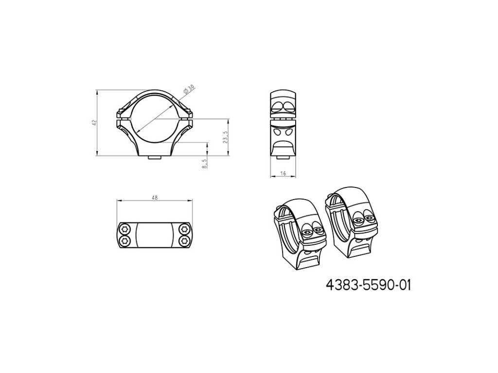 Na základnu je možno připevnit různou variantu upínacích kroužků různých průměrů a výšek případně různých adaptérů optoelektronických přístrojů. Tím lze montáž přizpůsobit konkrétním potřebám a požadavkům. Povrch dílů montáže je důsledně antireflexní a je opatřen kvalitním černěním.