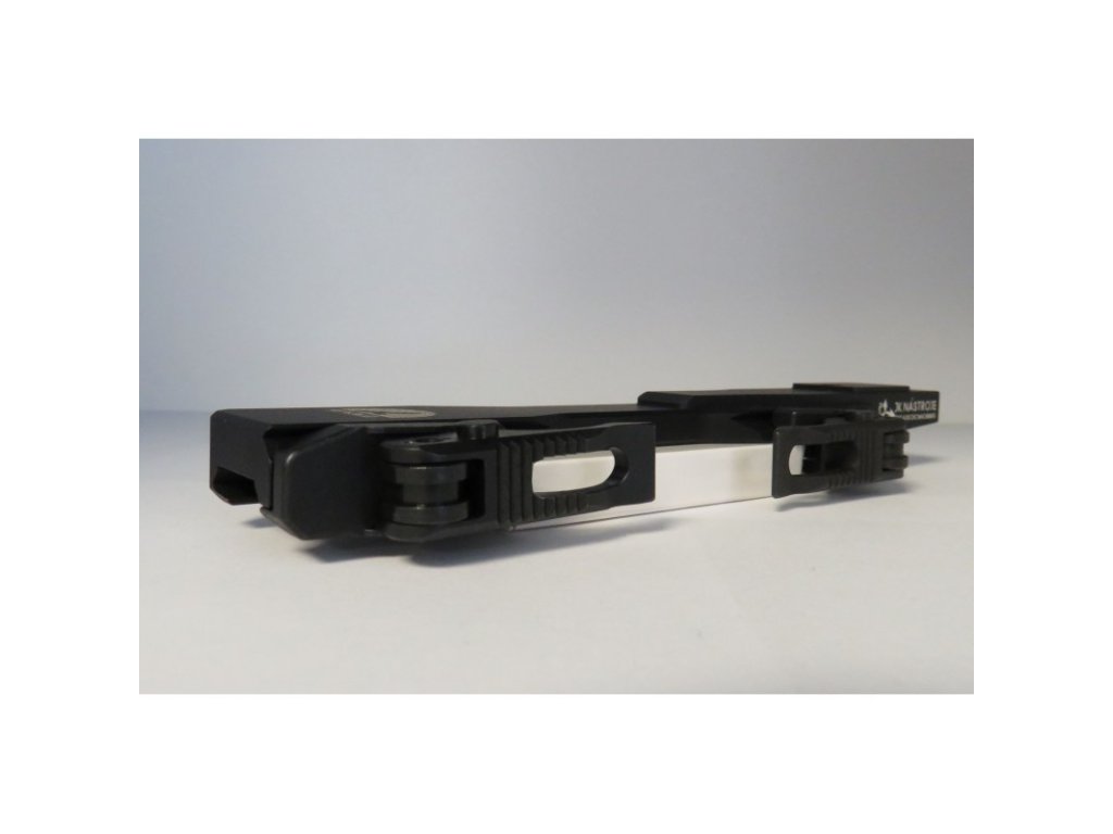 Zajištění je provedeno pomocí dvojice rychloupínacích páček, doplněných aretací proti jejich nechtěnému otevření. Upínání je z důvodů uvolnění prostoru pro bezpečné vyhazování nábojnic provedeno na levé straně montáže. Rychloupínací páčky jsou ergonomicky tvarovány a umožňují pohodlnou manipulaci také v zimních rukavicích.