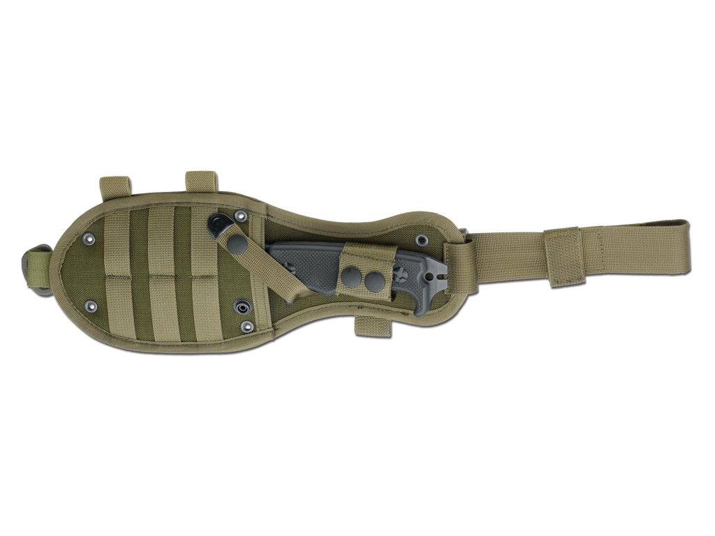 a Cordura pouzdrem kompatibilním s MOLLE systémem, které umožňuje nošení na