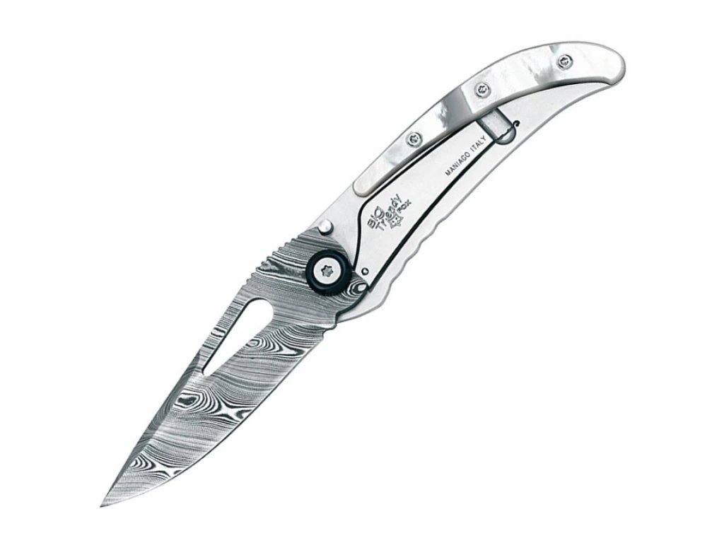 Rukojeť tvoří kombinace nerezové oceli a nádherné perleti (Mother of Pearl), která dodává noži exkluzivní vzhled a výjimečný charakter. Díky elegantnímu tvarování perfektně padne do ruky a stává se nejen funkčním nástrojem, ale i stylovým doplňkem či sběratelským kouskem.