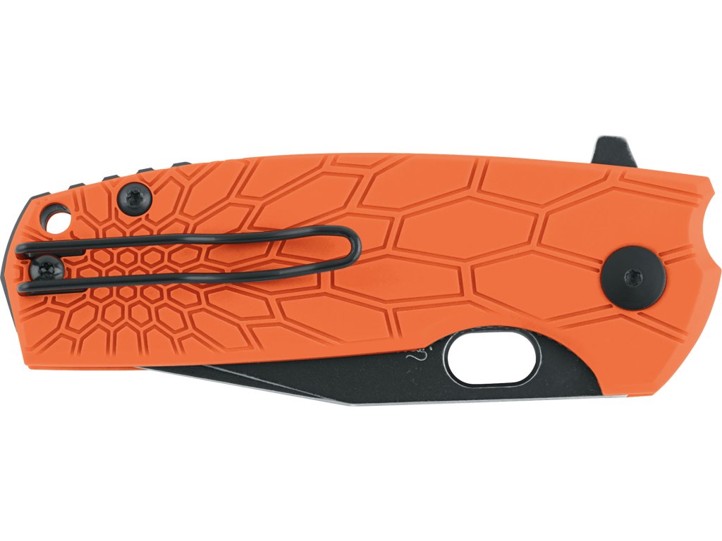 Čepel o délce 78 mm je vyrobena z vysoce kvalitní oceli Böhler N690Co, kalené na 58–60 HRC, což zajišťuje excelentní ostrost, odolnost a dlouhou životnost. Povrchová úprava Black Idroglider Stone Washed dodává čepeli elegantní matný vzhled a zároveň chrání ocel před korozí i mechanickým opotřebením. Rukojeť z oranžového FRN® (Fiber Reinforced Nylon) je lehká, odolná a ergonomicky tvarovaná pro pohodlný a jistý úchop. Nůž je vybaven liner lockem, který spolehlivě fixuje čepel v otevřené poloze, a reverzibilním ocelovým klipem, takže jej lze nosit na obou stranách.