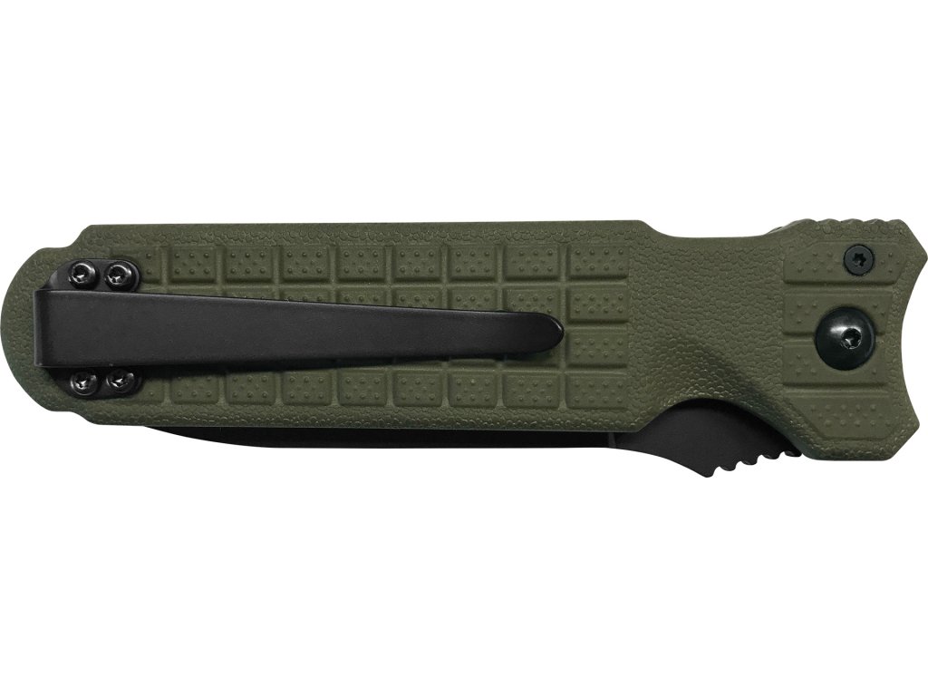 Rukojeť z pevného syntetického materiálu FRN (Fiber Reinforced Nylon) v olivovém provedení (OD green) poskytuje jistý protiskluzový úchop i v mokrých či znečištěných podmínkách. Reversibilní kapesní klip a kvalitní nerezové šrouby s niklovanou povrchovou úpravou zajišťují univerzální a bezpečné nošení. Pístek (locking piston) a další klíčové součásti v provedení Black Idroglider zaručují hladký chod mechanismu a dlouhou životnost.