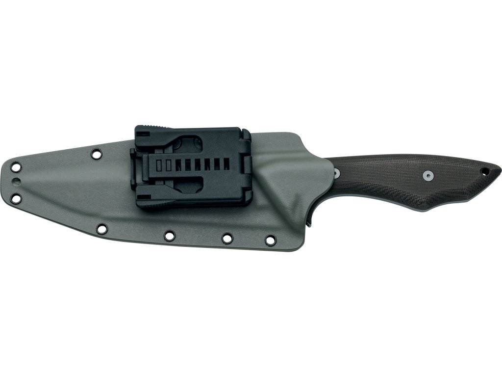Rukojeť z Micarty v zeleném odstínu nabízí jistý a pohodlný úchop i v náročných podmínkách. Konstrukce full tang zvyšuje odolnost a spolehlivost nože. Kydex® pouzdro zajišťuje bezpečné nošení a rychlý přístup k noži, přičemž je odolné proti vlhkosti a nárazům.