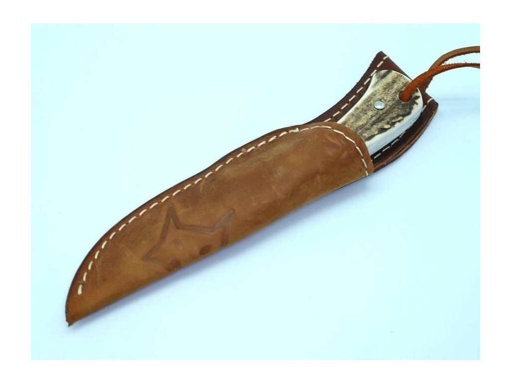 Čepel je vyrobena z vysoce kvalitní nerezové oceli 440C, kalené na tvrdost HRC 57–59, což zaručuje výbornou ostrost, snadné broušení a dlouhou životnost ostří. Díky tradičnímu tvaru čepele je nůž ideální pro běžné lovecké úkony, vyvrhování či stahování zvěře, ale i pro univerzální použití v přírodě. Rukojeť tvoří pravý jelení paroh, který každému kusu dodává jedinečný charakter. Přírodní textura a ruční zpracování zajišťují pohodlný a pevný úchop i při delší práci. Každý nůž je originál, lišící se kresbou a barvou parohu.