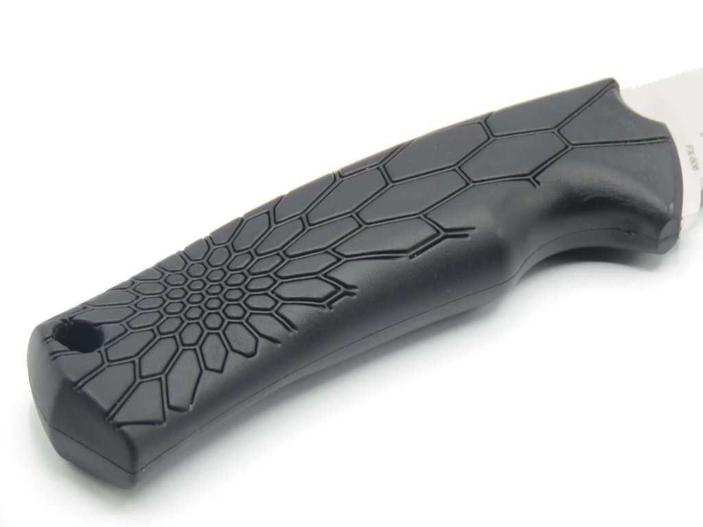 Čepel z vysoce kvalitní nerezové oceli BECUT dosahuje tvrdosti HRC 57–58 a je známá svou houževnatostí, stabilitou ostří a vysokou odolností vůči korozi. Povrchová úprava stone washed chrání čepel před mikroškrábanci a dodává noži charakteristický „pracovní“ vzhled. Tvar čepele drop point v kombinaci se Scandi výbrusem poskytuje ideální rovnováhu mezi pevností, přesností a kontrolou při řezání. Rukojeť z kombinace polypropylenu (PP) a termoplastické gumy (TPE) je tvarována pro maximální ergonomii a jistý úchop. Texturovaný povrch zajišťuje bezpečné držení i v mokrých či studených podmínkách. Nůž je plně oboustranný (pro praváky i leváky) a na konci rukojeti je lanyard hole pro připevnění šňůrky.
