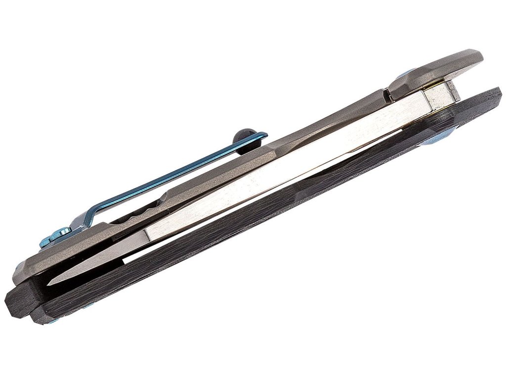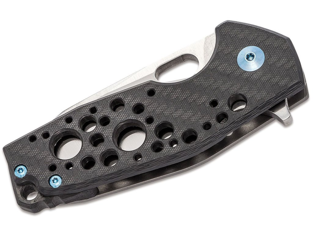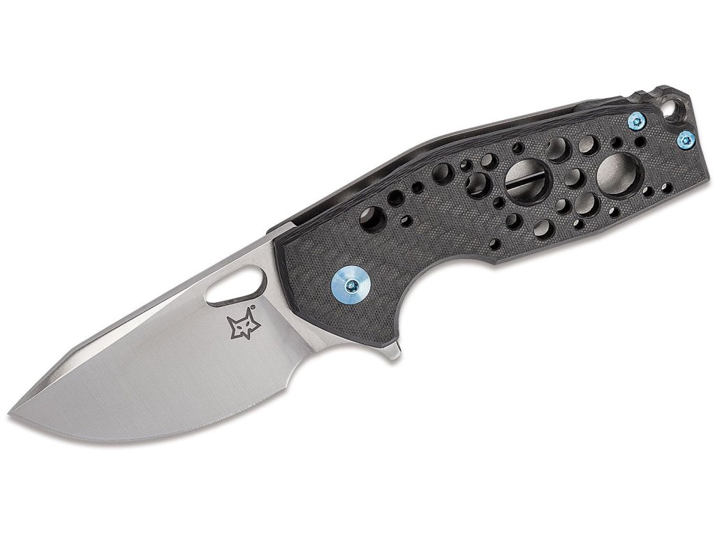 Fox Suru je kapesní nůž s rámovým zámkem z titanu a přední střenkou z uhlíkového vlákna. Navzdory svým kompaktním rozměrům vyniká tento model od Jespera Voxnæse svou výbornou ergonomií, která padne do ruky různým typům i velikostem dlaně. Silně zakřivená čepel je osazena kuličkovými ložisky a otevírá se pomocí flipperu. Design doplňují titanové šrouby a frézovaný, eloxovaný titanový klip s dekorativní kuličkou ze zirkonia. Ocel čepeli je prémiová M390, která jen podtrhuje preciznost a výjimečnost tohoto modelu.