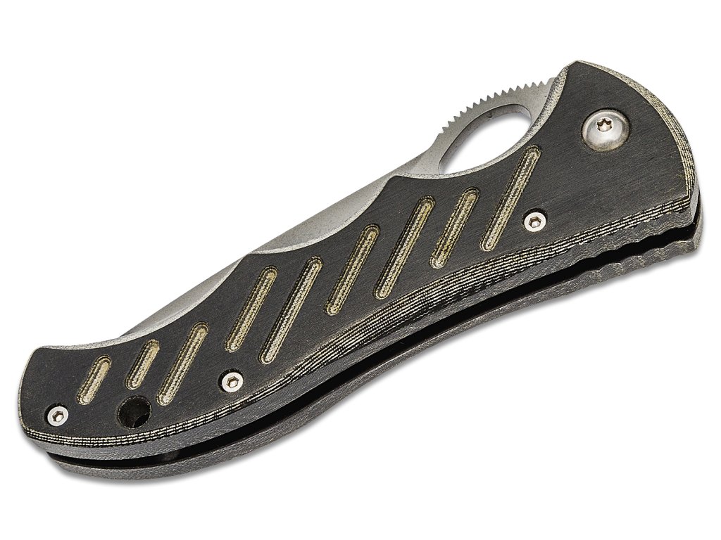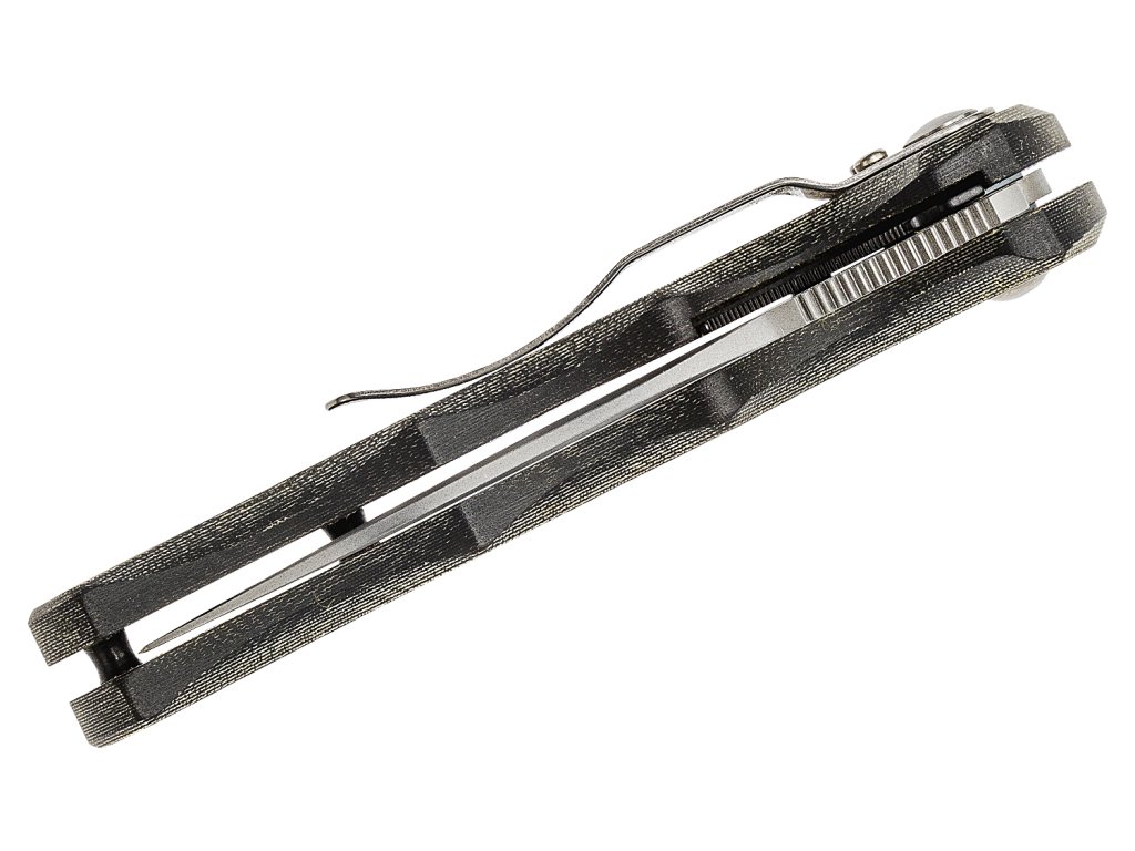 Rukojeť z mikarty s výrazným 3D frézováním a anatomickými prohlubněmi poskytuje jistý a pohodlný úchop i v rukavicích nebo za mokra. Otevírání zajišťuje praktický otvor v čepeli (thumb hole), umožňující ovládání jednou rukou, zatímco pevný liner lock zaručuje bezpečnost při používání.