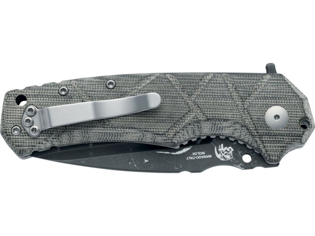 Rukojeť z odolné OD Green canvas Micarty spojuje stylový vzhled a funkčnost – materiál je lehký, velmi pevný, příjemný na dotek a poskytuje výborný úchop i v náročných podmínkách. Doplněna je černým G10 spacerem, pískovanými šrouby z AISI 303 a klipem z nerezové oceli AISI 420.