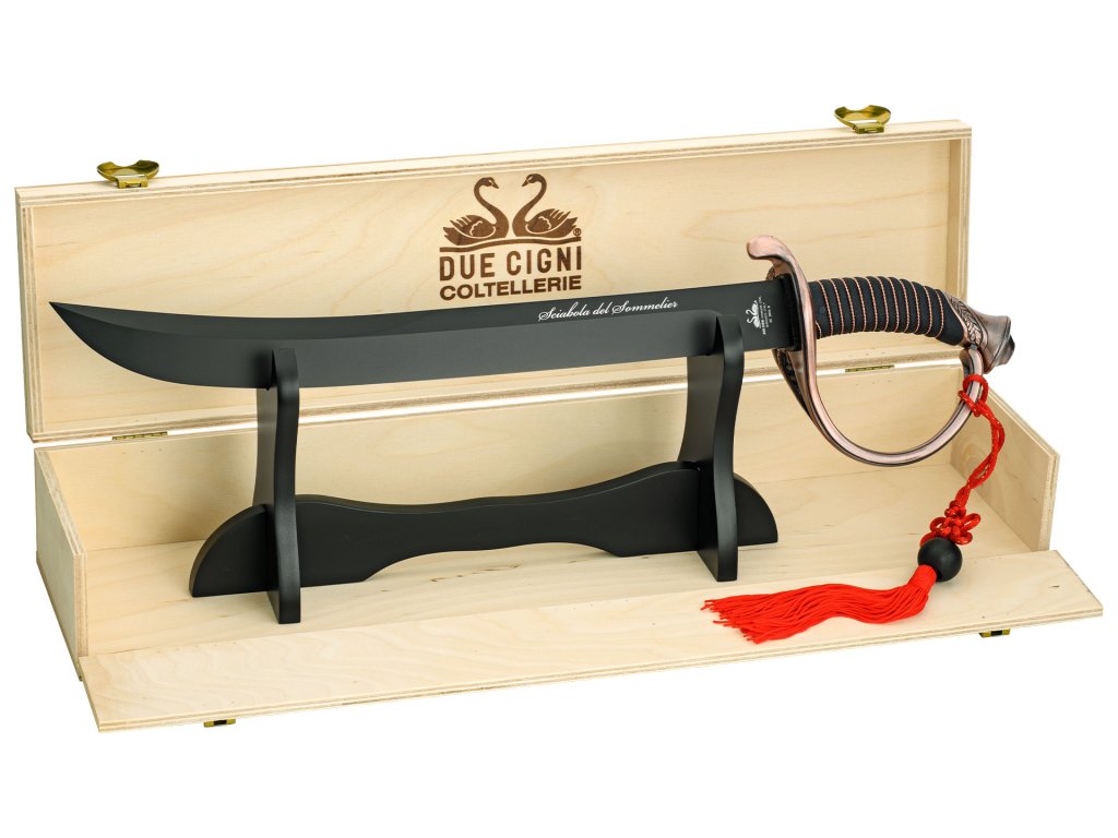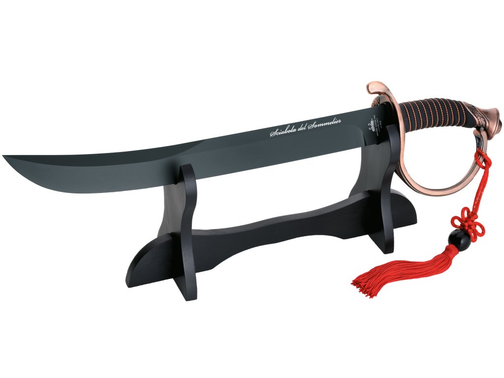 Rukojeť s měděnými prvky podtrhuje noblesní charakter šavle a zajišťuje pevný a jistý úchop při ceremoniálním otevření lahve. Díky celkové délce 53 cm a hmotnosti 758 g působí nástroj majestátně a stává se nepřehlédnutelným středem pozornosti při oslavách.
