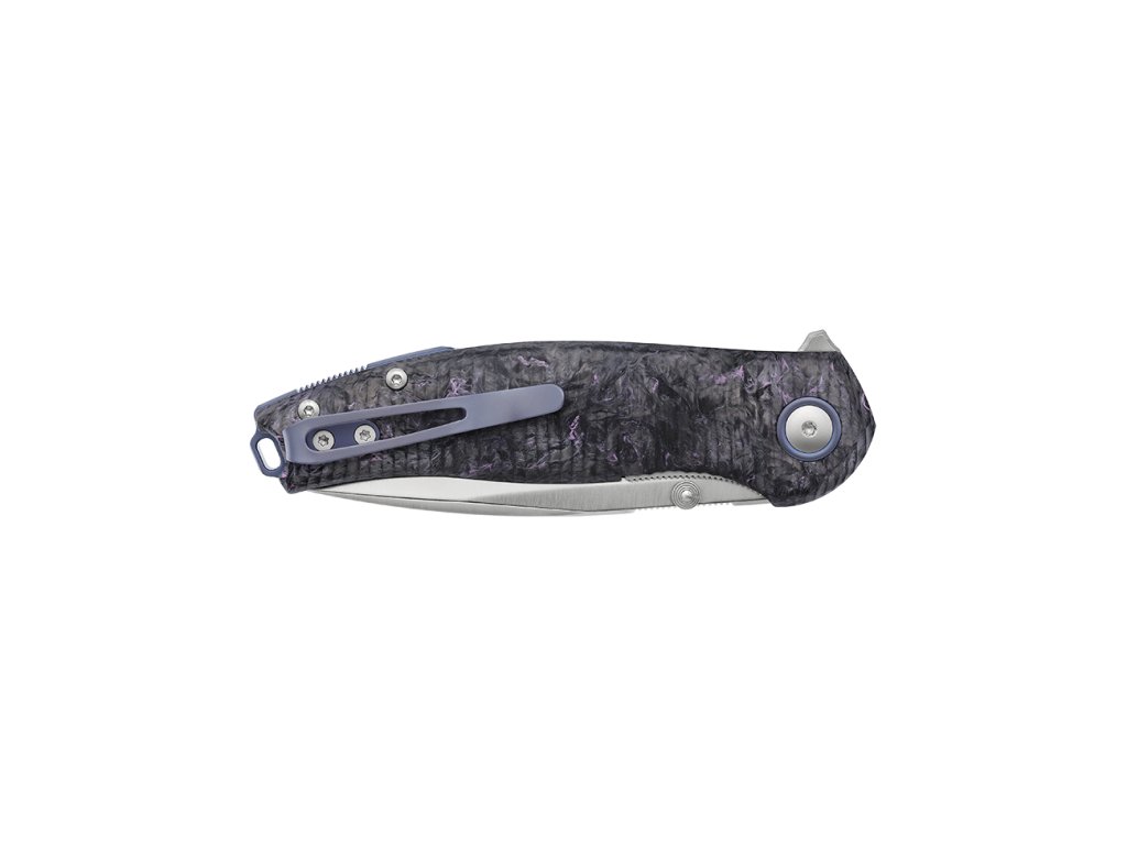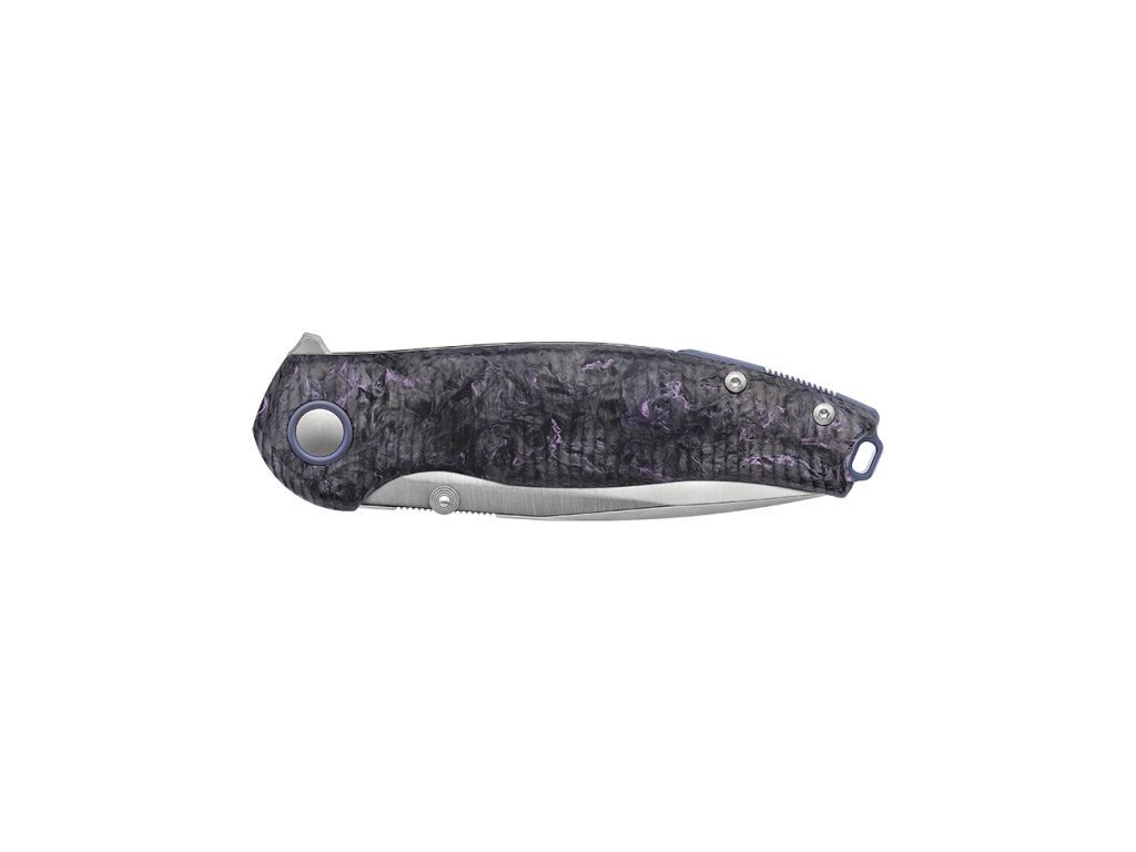 Rukojeť z materiálu Purple Dark Matter carbon fiber je výrazným estetickým