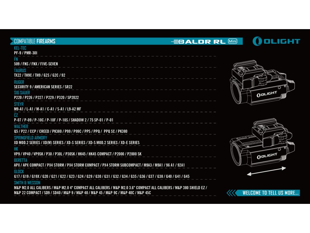 Olight BALDR RL Mini kombinuje výkonné LED světlo s červeným laserem a nabízí perfektní rovnováhu mezi výkonem, přesností a kompaktností. Díky světelnému výkonu až 600 lumenů, dosvitu 130 m a integrovanému laseru o výkonu 5 mW máte cíl vždy pod kontrolou. Díky rychloupínacímu systému a kompatibilitě s Glock i Picatinny lištami je připravena k akci během několika sekund.