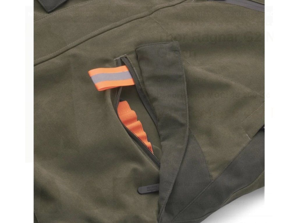 O funkčnost se stará 14 praktických kapes – včetně kapsy na rádio s vývodem pro anténu, velké zadní kapsy a zateplených fleecových kapes pro ruce. Odnímatelná kapuce nastavitelná ve třech směrech chrání hlavu před deštěm a větrem, zatímco ventilační zipy v podpaží umožňují rychlou regulaci teploty při pohybu. HiVis reflexní prvky zvyšují viditelnost a bezpečnost, a nechybí ani držák na náboje, D-kroužek pro vybavení či silikonový spodní lem, který drží bundu na místě.