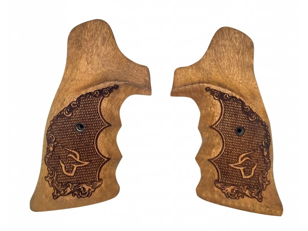 kvalitní, dřevěné pažbičky s anatomickým tvarováním a klasickými motivy a logem Taurus (býčí hlava)Doplňkové parametry