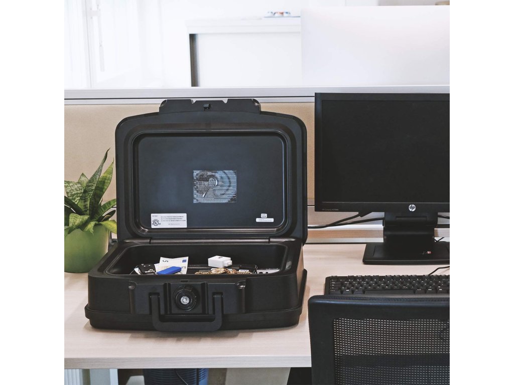 Hlavní výhody: Cylindrický zámek se 2 klíči Ohnivzdornost po dobu 30 minut pro dokumenty při max. teplotě 843 °C (UL testováno - vnitřní teplota zůstává nižší než 177 °C) Praktická rukojeť pro přenos Kvalitní plastové provedení Černý box z modelové řady Fire Data disponuje klasickým cylindrickým zámkem dodávaným spolu s 2 klíči. Box Fire Data 2 je ohnivzdorný, a to až po dobu 30 minut pro papírové dokumenty (testováno při teplotě 843 °C). Uložené věci v boxu můžete jednoduše přenášet díky vestavěné výklopné rukojeti. Box ale není vodotěsný. Při častém přenášení potěší kvalitní plastové provedení, které odolá i náročnějšímu zacházení. Pro tuto schránku na zbraně je stanoveno, že při přechovávání krátkých zbraní do počtu 2 ks nebo do 500 ks nábojů plati prohlášení o shodě.Doplňkové parametry