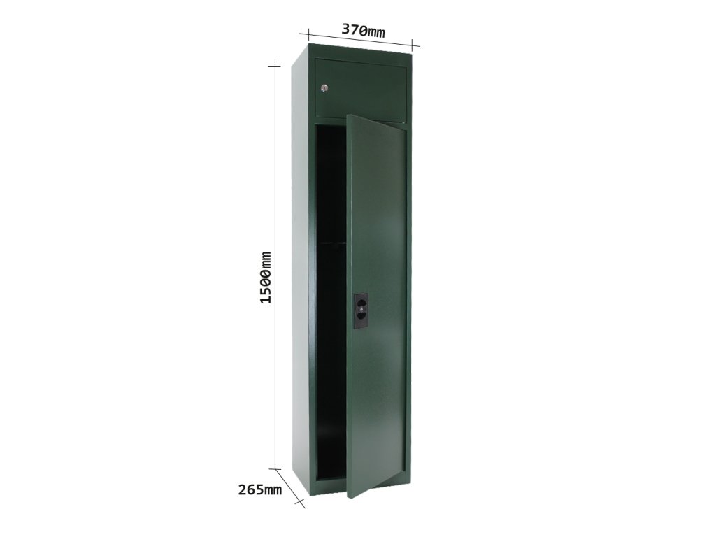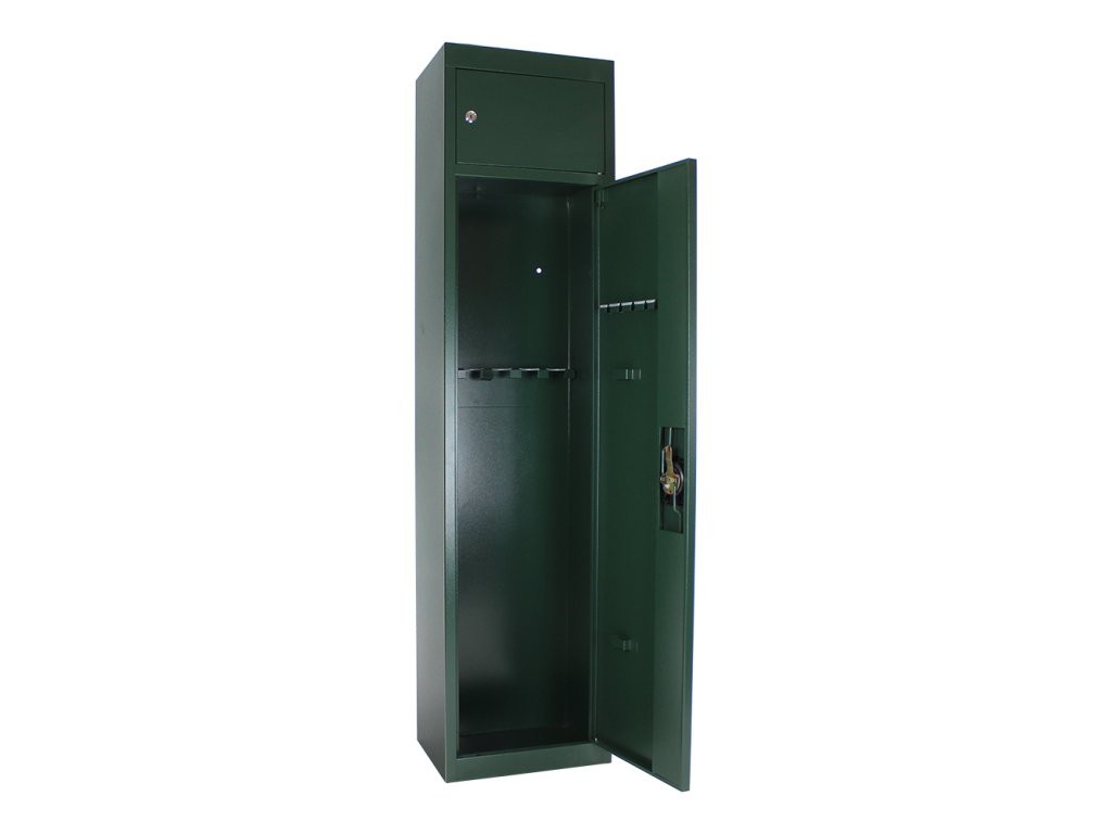 Hlavní výhody: Cylindrický zámek s 2 klíči Prostor pro 5 dlouhých zbraní Kvalitní povrchová úprava Jednoplášťová skříň Vnitřní schránka (250 mm) s cylindrickým zámkem a 2 klíči Zelená skříň na zbraně spolu se samostatnou vnitřní schránkou nabízí dostatek prostoru pro vaše dlouhé zbraně. Celkově až 5 dlouhých zbraní uskladníte uvnitř skříně a do horní schránky lze uložit např. munici. Kvalitní ocel zajistí, že vaše zbraně budou v bezpečí před nežádoucím zacházením a zároveň pěkně uskladněny. Skříň je vybavena otvory na zadní a spodní straně a spolu s dodávaným materiálem pro upevnění ji snadno zafixujete na místě. Tato skříň není certifikována. Pro tuto schránku na zbraně je stanoveno, že při přechovávání dlouhých zbraní do počtu 2 ks nebo do 500 ks nábojů plati prohlášení o shodě.Doplňkové parametry