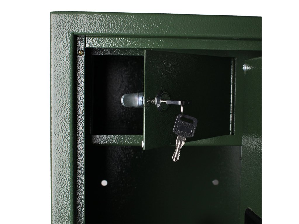 Hlavní výhody: Elektronický zámek s 2 klíči Vhodná pro 5 dlouhých zbraní Napájení 4 x 1,5V AA baterií (není součástí balení) Jednoplášťová skříň Dveřní plášť tloušťky 3 mm a korpus hrubý 2 mm Držák na dveřích pro nářadí na čištění zbraní Vnitřní schránka s cylindrickým zámkem a 2 klíči Mechanické nouzové otevírání s cylindrickým zámkem a 2 klíči Otvory na ukotvení na spodní i zadní části skříně Zelená skříň na zbraně se spolehlivým elektronickým zámkem a 2 nouzovými klíči pro otevření v případě vybití baterií. Jinak je zámek napájen 1,5V AA bateriemi a uvnitř je dostatek prostoru pro 5 dlouhých zbraní. Skříň je vyrobena z kvalitního ocelového plechu tloušťky 3 mm a na vnitřní straně dveří najdete praktický držák, do kterého můžete uschovat nářadí na čištění zbraní. V horní části se nachází samostatně uzamykatelná vnitřní schránka např. pro munici. Skříň na zbraně upevníte na podlahu nebo o zeď přes předpřipravené otvory pro upevnění. Kotvící materiál je součástí dodávky. Tato skříň není certifikována. Pro tuto schránku na zbraně je stanoveno, že při přechovávání dlouhých zbraní do počtu 2 ks nebo do 500 ks nábojů plati prohlášení o shodě.Doplňkové parametry