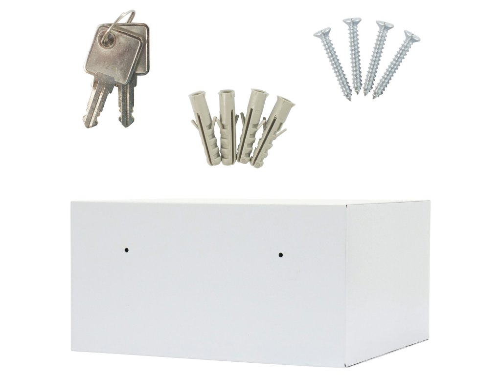 Hlavní výhody: Cylindrický zámek Polička uvnitř Dveře tloušťky 4 mm Korpus tloušťky 1 mm Pozinkovaný materiál Otvory na ukotvení na spodní a zadní straně Sejf z modelové třídy Home Case disponuje cylindrickým zámkem dodávaným spolu s 2 klíči. Sejf ma praktické rozměry a je vhodný pro přímé zabudování do skříně, nočního stolku nebo pracovního stolku. Dveře tloušťky 4 mm lze otevřít do úhlu 90°. Sejf Home Case 4 je vhodný pro uložení peněženky, osobních věcí, dokladů nebo klíčů. Uvnitř sejfu se nachádzí polička. Sejf je vyroben z kvalitního pozinkovaného materiálu a má připravené otvory na spodní a zadní straně. Materiál k upevnění je součástí balení.Doplňkové parametry