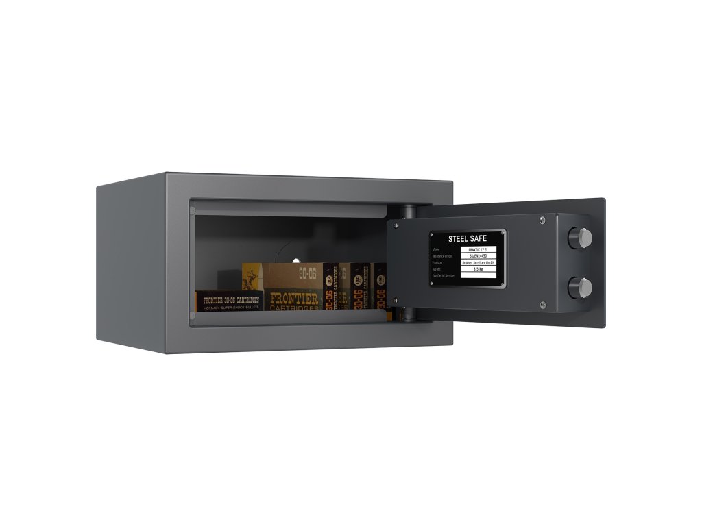 Hlavní výhody: Certifikovaný elektronický trezorový zámek třídy A podle ČSN EN 1300 Bezpečnostní třída S1 (ČSN EN 14450+A1:2024) Splňuje podmínku minimálně 15 RU podle normy ČSN EN 1143-1:2020 Možnost úschovy zbraní a střeliva podle zákona č. 119/2002 Sb. Jednoplášťový nábytkový trezor Dva otvory pro ukotvení na spodní a zadní straně Jednoplášťový elektronický nábytkový trezor Praktik 17 EL nabízí dostatek prostoru pro důležité doklady, úřední dokumenty nebo cestovní doklady. Certifikovaný zámek třídy A (ČSN EN 1300) a bezpečnostní třída S1 (ČSN EN 14450+A1:2024) zajistí, že k uloženým věcem budete mít přístup pouze vy. Splňuje podmínku minimálně 15 RU podle normy ČSN EN 1143-1:2020. V trezoru je možné uložit také zbraně nebo střelivo. Trezor lze jednoduše ukotvit pomocí dvou otvorů v zadní nebo spodní stěně za použití přiloženého kotvicího materiálu.Doplňkové parametry