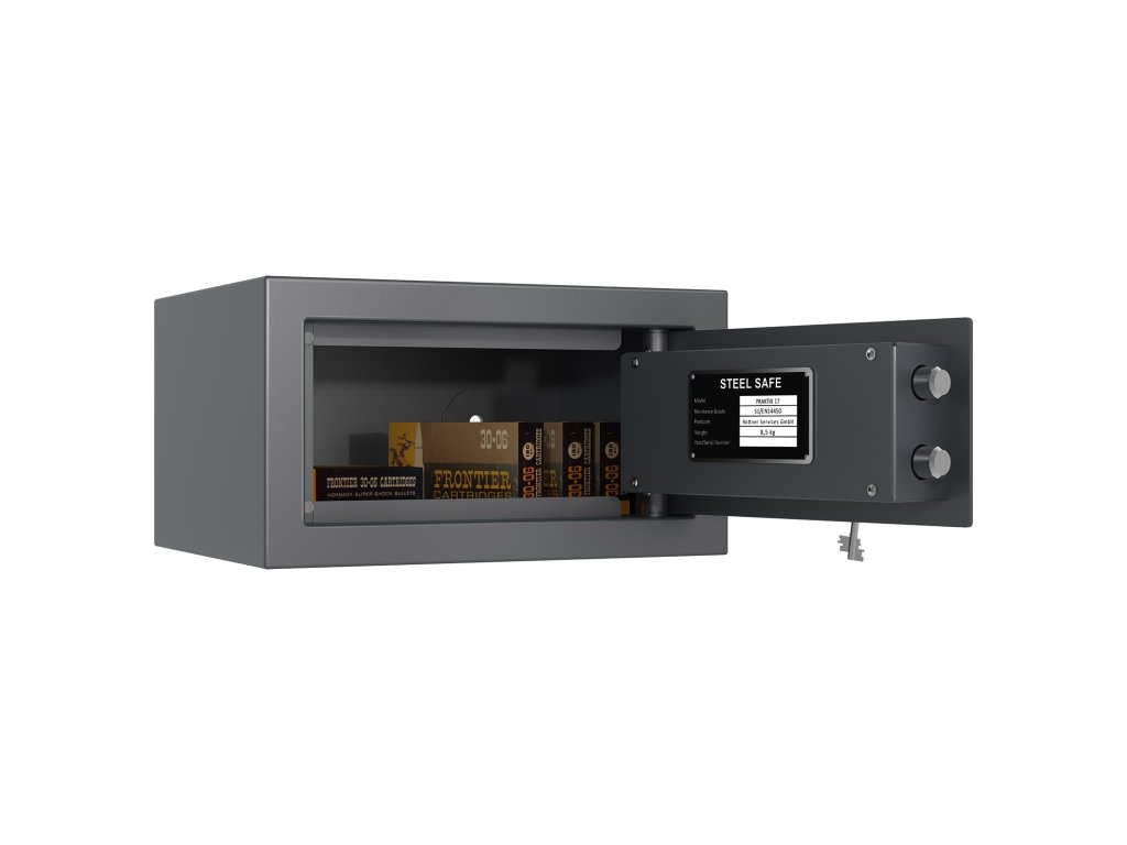 Hlavní výhody: Certifikovaný trezorový zámek třídy A podle ČSN EN 1300 Bezpečnostní třída S1 (ČSN EN 14450+A1:2024) Splňuje podmínku minimálně 15 RU podle normy ČSN EN 1143-1:2020 Možnost úschovy zbraní a střeliva podle zákona č. 119/2002 Sb. Jednoplášťový nábytkový trezor Dva otvory pro ukotvení na spodní a zadní straně Jednoplášťový nábytkový trezor Praktik 17 nabízí dostatek prostoru pro důležité doklady, úřední dokumenty nebo cestovní doklady. Certifikovaný zámek třídy A (ČSN EN 1300) a bezpečnostní třída S1 (ČSN EN 14450+A1:2024) zajistí, že k uloženým věcem budete mít přístup pouze vy. Splňuje podmínku minimálně 15 RU podle normy ČSN EN 1143-1:2020. V trezoru je možné uložit také zbraně nebo střelivo. Trezor lze jednoduše ukotvit pomocí dvou otvorů v zadní nebo spodní stěně za použití přiloženého kotvicího materiálu.Doplňkové parametry