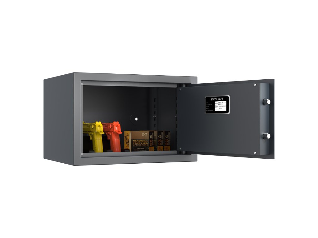 Hlavní výhody: Certifikovaný trezorový zámek třídy A podle ČSN EN 1300 Bezpečnostní třída S1 (ČSN-1445+A1:2024) Splňuje podmínku minimálně 15 RU podle normy ČSN EN 1143-1:2020 Možnost úschovy také zbraní a munice podle č. 119/2002 Sb. Jednoplášťový nábytkový trezor Dodáváno s 1 vyjímatelnou policí Dva otvory pro ukotvení na spodní a zadní straně Jednoplášťový nábytkový trezor Praktik 30 nabízí dostatek prostoru pro důležité doklady, úřední dokumenty nebo cestovní doklady. Certifikovaný zámek třídy A (ČSN EN 1300) a bezpečnostní třída S1 (ČSN-1445+A1:2024) zajistí, že k uloženým věcem budete mít přístup pouze vy. Splňuje podmínku minimálně 15 RU podle normy ČSN EN 1143-1:2020. V trezoru je možné uchovávat také zbraně nebo munici. Dodáváno s 1 vyjímatelnou policí. Trezor lze jednoduše ukotvit pomocí dvou otvorů v zadní nebo spodní stěně za použití přiloženého kotevního materiálu.Doplňkové parametry